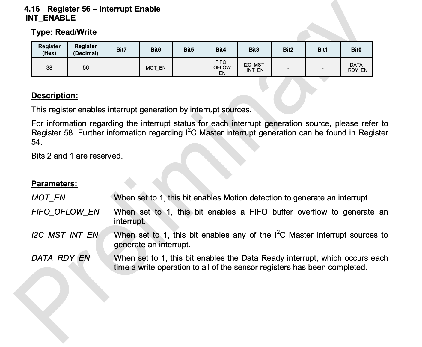 原来是看的 datasheet 版本太老了,新版本已经没有这个运动检测中断了。